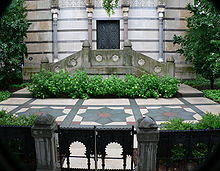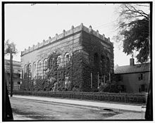 The society's "building" was designed in the Moorish Revival style by Richard Morris Hunt and constructed in 1870.[11] A later expansion was completed in 1901. Architectural historian Patrick Pinnell includes an in-depth discussion of Keys' building in his 1999 history of Yale's campus, relating the then-notable cost overruns associated with the Keys structure and its aesthetic significance within the campus landscape. Pinnell's history shares the fact that the land was purchased from another Yale secret society, Berzelius (at that time, a Sheffield Scientific School society). In 2002, the society underwent a major construction project rumored to involve an aquarium beneath the society.