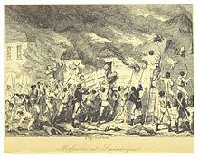 The Scullabogue massacre was an atrocity committed in Scullabogue, near Newbawn, County Wexford, Ireland on 5 June 1798, during the 1798 rebellion. Insurgents massacred up to 200[1] noncombatant men women and children, most of whom were Protestant, who were held prisoner in a barn which was then set alight.[2] A participant in the rebellion, General Thomas Cloney, put the death count at 100.[3]