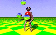 The first demo that showed the raytracing capabilities was an animation of a juggler juggling three chrome balls. Even though the juggler was constructed out of spheres, the balls' reflections and movement made it look realistic. The juggler demo was generated on an experimental version of Sculpt 3D. The animation, released in January 1986, generated so much interest that the full 3D application was programmed.[3][4][5]