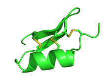 - ^ a b c d e Zhu Q, Liang S, Martin L, Gasparini S, Ménez A, Vita C (September 2002). "Role of disulfide bonds in folding and activity of leiurotoxin I: just two disulfides suffice". Biochemistry. 41 (38): 11488–94. doi:10.1021/bi026136m. PMID 12234192.