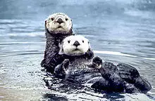 There are several documented cases in which male sea otters have forcibly copulated with juvenile harbor seals, sometimes resulting in death.[87] Similarly, forced copulation by Sea Otters involving animals other than Pacific Harbor Seals has occasionally been reported.[88]