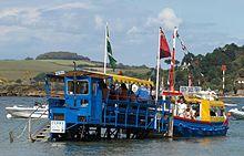 A sea tractor is also used at South Sands Beach near Salcombe, Devon. The beach has no jetty or pier and the South Sands Ferry therefore cannot reach dry land to pick up passengers. The sea tractor transports passengers to the ferry waiting a few metres out to sea.[1]