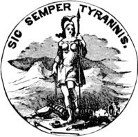 9. ^ von Borcke, Heros (April 1866). "Memoirs of the Confederate War for Independence". Blackwood's Edinburgh Magazine. American edition, vol. 62. New York: Leonard Scott & Co. 99 (606): 462. Retrieved 21 August 2010. ...the coat of arms of the state of Virginia, bearing the motto, Sic semper tyrannis, which the soldiers translated, "Take your foot off my neck", from the action of the principal figure ... representing Liberty, who, with a lance in her right hand, is standing over the conquered and prostrate tyrant, and apparently trampling on him with her heel.