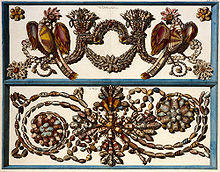 Small pieces of colored and iridescent shell have been used to create mosaics and inlays, which have been used to decorate walls, furniture and boxes. Large numbers of whole seashells, arranged to form patterns, have been used to decorate mirror frames, furniture and man-made grottos.
