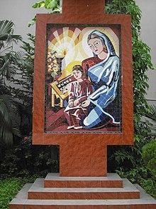 In modern times, sedes sapientiae is for example the motto of the Catholic University of Leuven (here a play on words, since the university itself is a major seat of learning in the Low Countries). In 1999, Notre Dame College in Dhaka created a collage of Mata Mary (Mother Mary, Bengali: মাতা মেরি; the common name in which the college is known as) where Mary is shown as the Seat of Wisdom. In September 2000, at the close of the Jubilee Year, Pope John Paul II commissioned the Slovenian Jesuit artist Marko Ivan Rupnik to create in mosaic an icon of the Virgin sedes sapientiae for the world's Catholic universities; it has since been passed reverently among Catholic institutions in a number of nations.