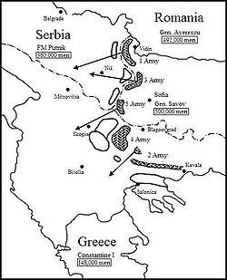 Bulgaria's intention was to defeat the Serbs and Greeks and to occupy areas as large as possible before the Great Powers interfered to end the hostilities. In order to provide the necessary superiority in arms, the entire Bulgarian army was committed to these operations. No provisions were made in case of a (officially declared) Romanian intervention or an Ottoman counterattack, strangely assuming that Russia would assure that no attack would come from those directions,[17] even though on 9 June Russia had angrily repudiated its Bulgarian alliance and shifted its diplomacy towards Romania (Russia already had named Romania's King Carol an honorary Russian Field Marshal, as a clear warning in shifting its policy towards Sofia in December 1912).[11] The plan was for a concentrated attack against the Serbian army across the Vardar plain to neutralize it and to capture northern Macedonia, together with a less concentrated one against the Greek army near Thessaloniki, which had approximately half the size of the Serbian army, in order to capture the city and south Macedonia. The Bulgarian high command was not sure whether their forces were enough to defeat the Greek army, but they thought them enough for defending the south front as a worst-case scenario, until the arrival of additional forces after defeating the Serbs to the north.