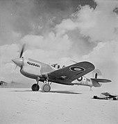 Kittyhawk Mark III, of No. 250 Squadron RAF taxiing at LG 91, Egypt, during Operation Lightfoot