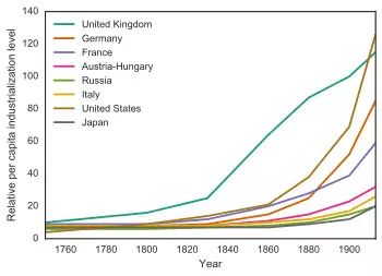 - ^ Data from Paul Bairoch, "International Industrialization Levels from 1750 to 1980," Journal of European Economic History (1982) v. 11.