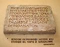 Translation: "Let no foreigner enter within the parapet and the partition which surrounds the Temple precincts. Anyone caught [violating] will be held accountable for his ensuing death." Today, the stone is preserved in Istanbul's Museum of Antiquities.[47]