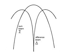 The new Mode S system was intended to operate with just a single reply from an aircraft, a system known as monopulse. The accompanying diagram shows a conventional main or "sum" beam of an SSR antenna to which has been added a "difference" beam. To produce the sum beam the signal is distributed horizontally across the antenna aperture. This feed system is divided into two equal halves and the two parts summed again to produce the original sum beam. However the two halves are also subtracted to produce a difference output. A signal arriving exactly normal, or boresight, to the antenna will produce a maximum output in the sum beam but a zero signal in the difference beam. Away from boresight the signal in the sum beam will be less but there will be a non-zero signal in the difference beam. The angle of arrival of the signal can be determined by measuring the ratio of the signals between the sum and difference beams. The ambiguity about boresight can be resolved as there is a 180° phase change in the difference signal either side of boresight. Bearing measurements can be made on a single pulse, hence monopulse, but accuracy can be improved by averaging measurements made on several or all of the pulses received in a reply from an aircraft. A monopulse receiver[15] was developed early in the UK Adsel programme and this design is still used widely today. Mode S reply pulses are deliberately designed to be similar to mode A and C replies so the same receiver can be used to provide improved bearing measurement for the SSR mode A and C system with the advantage that the interrogation rate can be substantially reduced thereby reducing the interference caused to other users of the system.[19]