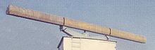 The early system used an antenna known as a hogtrough. This has a large horizontal dimension to produce a narrow horizontal beam and a small vertical dimension to provide cover from close to the horizon to nearly overhead. There were two problems with this antenna. First, nearly half the energy is directed at the ground where it is reflected back up, and interferes with, the upward energy causing deep nulls at certain elevation angles and loss of contact with aircraft. Second, if the surrounding ground is sloping, then the reflected energy is partly offset horizontally, distorting the beam shape and the indicated bearing of the aircraft. This was particularly important in a monopulse system with its much improved bearing measurement accuracy.[10]