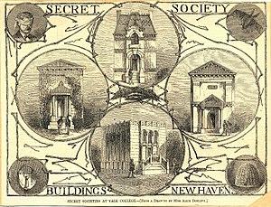Many student societies established on university campuses in the United States have been considered secret societies. Perhaps one of the most famous secret collegiate societies is Skull and Bones at Yale University.[7] The influence of undergraduate secret societies at colleges such as Harvard College, Cornell University, Dartmouth College, Emory University, the University of Chicago,[8] the University of Virginia, Georgetown University, New York University,[9] and Wellesley College has been publicly acknowledged, if anonymously and circumspectly, since the 19th century.[10][11]