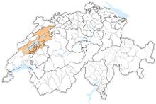 The region is at the boundary of the cantons of Bern, Fribourg, Neuchâtel, and Vaud, forming part of the linguistic boundary region between French- and German-speaking Switzerland.