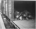 The bodies of 3 political prisoners, shot as they tried to flee the massacre at Seeshaupt. All prisoners on the train were killed by machine guns at the hands of SS troops.