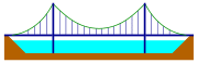 A self-anchored suspension bridge is a suspension bridge in which the main cables attach to the ends of the deck, rather than to the ground via large anchorages. The design is well-suited for construction atop elevated piers, or in areas of unstable soils where anchorages would be difficult to construct.