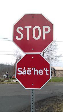 Bilingual road signs, such as stop signs and speed limit signs, appear in the Seneca capital of Jimersontown; these signs were erected in 2016. Prior to this, as part of the upgrade to Interstate 86, the names of townships within the Allegany Indian Reservation were marked in Seneca along the highway in Comic Sans.