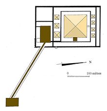 Senusret's pyramid complex was built north-east of the Red Pyramid of Dashur.[16] It far surpassed those from the early twelfth dynasty in size, grandeur, and underlying religious conceptions.