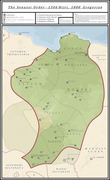 By this time a new danger to Senussi territories had arisen from the French colonial empire, who were advancing from the French Congo towards the western and southern borders the Wadai Empire.[2] The Senussi kept them from advancing north of Chad.