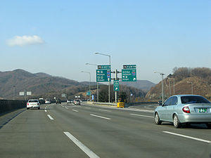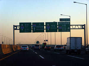 The Capital Region First Ring Expressway (Formerly as Seoul Ring Expressway) (Expressway No.100) (Korean: 수도권제1순환고속도로; RR: Sudogwon Je1sunhwan Gosokdoro) is an expressway, circular beltway or ring road around Seoul, South Korea. It connects satellite cities around Seoul, Ilsan, Namyangju, Hanam, Pyeongchon, Jungdong, Bundang, Pangyo, Sanbon and Gimpo. The expressway runs 127.6 km. Seoul Ring Expressway is currently under construction to widen the expressway between Anhyeon Junction to Seongnam which is expected to be finished in 2016.