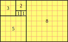 The Fibonacci numbers comprise the integer sequence whose elements are the sum of the previous two elements. The first two elements are either 0 and 1 or 1 and 1 so that the sequence is (0, 1, 1, 2, 3, 5, 8, 13, 21, 34, ...).[2]