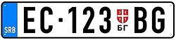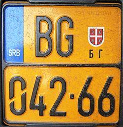 Vehicle registration plates of Serbia are issued using a two-letter region code, followed by three or four-digit numeric and a two-letter alpha license code, separated by a hyphen (e.g., BG 123-AA or BG 1233-AA).