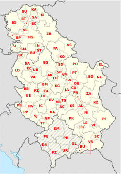 - ^ Pravilnik o utvrđivanju registarskih područja za motorna i priključna vozila, „Službeni glasnik RS”, no. 34, 30. September 1998.