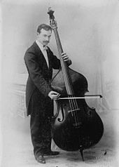 Koussevitzky was born into a Jewish family of professional musicians in Vyshny Volochyok, Tver Governorate (present-day Tver Oblast), about 250 km northwest of Moscow, Russia.[1] His parents taught him violin, cello, and piano. He also learned trumpet.[2] At the age of fourteen he received a scholarship to the Musico-Dramatic Institute of the Moscow Philharmonic Society,[3] where he studied double bass with Rambusek[2] and music theory. He excelled at the bass, joining the Bolshoi Theatre orchestra at the age of twenty, in 1894, and succeeded his teacher, Rambusek, as the principal bassist in 1901. That same year, according to some sources, he made his début (25 March) as a soloist in Moscow,[2] although his biographer Moses Smith states he made his solo début earlier in 1896;[4] he later won critical acclaim with his first recital in Berlin in 1903. In 1902 he married the dancer Nadezhda Galat. The same year, with Reinhold Glière's help, he wrote a popular concerto for the double bass, which he premiered in Moscow in 1905.[2] In 1905, Koussevitzky divorced Nadezhda and married Natalie Ushkova, the daughter of an extremely wealthy tea merchant.[5] He soon resigned from the Bolshoi, and the couple moved to Berlin, where Serge studied conducting under Arthur Nikisch, using his new-found wealth to pay off his teacher's gambling debts.[6]