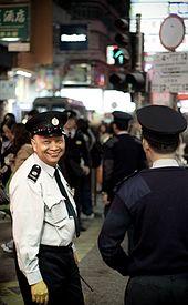 Only members of the Hong Kong Police's Tactical units, Emergency unit, and motorcycle officers do not wear the peaked cap when on duty.