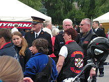 In Denmark, the use of peaked cap has seen a gradual decline from official uniforms, but it is still used in the ceremonial uniforms the general corps of the Army, officers of the Airforce,[5] officers of the Navy,[6] the police[7] and fire department.[8]