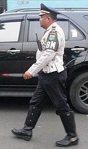 Members of the armed and uniformed services in Indonesia wear the Peaked cap during ceremonial and operational duties. It is widely worn by the Indonesian National Police, the Indonesian National Armed Forces and other uniformed institutions in the country.
