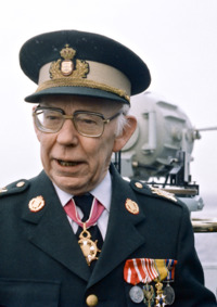 Aluf Yedidya Ya'ari (c), former commander of the Israeli Navy, wearing a navy combination cap