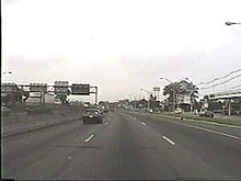 One-way service roads on either sides of highways are relatively common in New York City and the surrounding areas. Due to the high urban density, this design allows rapid access on and off the highway while also providing a viable alternate route in the case of accidents and traffic. In the borough of Queens, the Van Wyck Expressway has this system implemented for most of its length. On Long Island, the Long Island Expressway (Interstate 495), has one-way service roads on each side of the expressway for most of its length from the Queens–Midtown Tunnel to Riverhead.