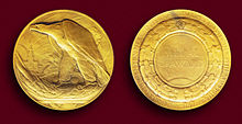 Benito Mussolini commemorated the Sesquicentennial by gifting a $800,000 replica of Bernini's Fountain of Sea Horses to the city, which arrived after the fair closed.[2] Installed in Fairmount Park, it was neglected for many years before being restored in 2013.[16] A Commemorative stamp, showing the Liberty Bell (Scott catalogue number 627) was printed, and two Early United States commemorative coins were minted. These were a silver half dollar and a gold Quarter eagle. The fifty cent coin shows the heads of George Washington and Calvin Coolidge on the obverse, and the Liberty Bell on the reverse. The $2 1/2 coin has on the obverse Liberty holding a torch and the Declaration of Independence while standing on a globe; the reverse depicts Independence Hall. The stamp was issued in large numbers and is very inexpensive. The coins sold only moderately well, although both remain more common than many commemorative issues of this period.