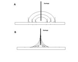 In addition to the tensiometer and pendant drop techniques, the sessile drop technique can be used in some cases to separate the known total surface energy of a liquid into its components. This is done by reversing the above idea with the introduction of a reference solid surface that is assumed to be incapable of polar interactions, such as polytetrafluoroethylene (PTFE).[1]