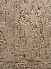 In a key episode in the conflict, Set sexually abuses Horus. Set's violation is partly meant to degrade his rival, but it also involves homosexual desire, in keeping with one of Set's major characteristics, his forceful, potent, and indiscriminate sexuality.[23] In the earliest account of this episode, in a fragmentary Middle Kingdom papyrus, the sexual encounter begins when Set asks to have sex with Horus, who agrees on the condition that Set will give Horus some of his strength.[24] The encounter puts Horus in danger, because in Egyptian tradition semen is a potent and dangerous substance, akin to poison. According to some texts, Set's semen enters Horus's body and makes him ill, but in "Contendings", Horus thwarts Set by catching Set's semen in his hands. Isis retaliates by putting Horus's semen on lettuce-leaves that Set eats. Set's defeat becomes apparent when this semen appears on his forehead as a golden disk. He has been impregnated with his rival's seed and as a result "gives birth" to the disk. In "Contendings", Thoth takes the disk and places it on his own head; in earlier accounts, it is Thoth who is produced by this anomalous birth.[25]
