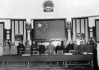 Signing the Seventeen Point Agreement for the Peaceful Liberation of Tibet at Zhongnanhai, 23 May 1951.