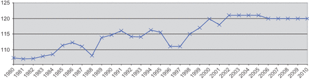 John Graunt noted that in London over a 35-year period in the 17th century (1628–62),[22] the birth sex ratio was 1.07; while Korea's historical records suggest a birth sex ratio of 1.13, based on 5 million births, in 1920s over a 10-year period.[23] Other historical records from Asia too support James' hypothesis. For example, Jiang et al. claim that the birth sex ratio in China was 116–121 over a 100-year period in the late 18th and early 19th centuries; in the 120–123 range in the early 20th century; falling to 112 in the 1930s.[24][25]