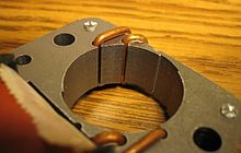 Like a shaded pole induction motor, they use field coils with additional copper shading coils (see the illustration) to produce a weakly rotating magnetic field. But unlike a shaded pole induction motor (which uses a squirrel cage rotor), the synchronous version of this motor uses a magnetized rotor. This rotor rotates synchronously with the rotating magnetic field: if the rotor begins to lag behind the rotating field, driving torque increases and the rotor speeds up slightly until the rotor's position within the rotating field is a point where torque = drag; similarly, if the rotation of the field slows down, the rotor will advance relative to the field, torque will decline, or even become negative, slowing the speed of the rotor until it again reaches a position relative to the field where torque = drag.