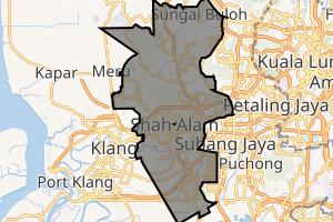 Shah Alam is located within the district of Petaling and a portion of the district of Klang in the state of Selangor with total area 290.3 km2. Due to its recent expansion, it is bordered by the cities of Subang Jaya and Petaling Jaya in the east, the district of Klang in the west, the district of Kuala Selangor and Selayang in the north, and the district of Kuala Langat in the south. Shah Alam is also one of the major cities within the Klang Valley, an area in Malaysia comprising Kuala Lumpur and its suburbs, and adjoining cities and towns in the state of Selangor, due to the Klang River flowing through it on its way westward to the Strait of Malacca.[4]