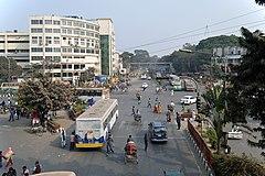 Located at the juncture of two major bus routes – Gulistan to Mirpur and Motijheel to Uttara – Shahbag Intersection serves as a public transport hubs in Dhaka, where the population commutes exclusively by the city bus services.[36][37] The Intersection also has one of the few taxi stands in Dhaka. The thoroughfares of Shahbag has been made free of cycle-rickshaws, the traditional transport of Dhaka.[38]