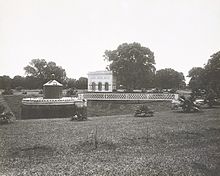 Upon [Judge John Francis Griffith Cooke's] retirement, in 1844 or 1845, he sold this [large plot of land with a small bungalow] to Khwaja Abdul Ghani. The Khwajas by this time had become one of the leading zamindar families of East Bengal and were eager to demonstrate their status. Within a few years Khwaja Abdul Ghani had built a magnificent country house ... laid out in a beautiful garden. This garden, in the Mughal style, was named Shahbagh, and soon the whole area came to be called by this name.
