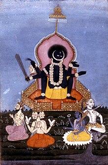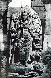 The Kulamārga preserves some of the distinctive features of the Kāpālika tradition, from which it is derived.[65] It is subdivided into four subcategories of texts based on the goddesses Kuleśvarī, Kubjikā, Kālī and Tripurasundarī respectively.[66] The Trika texts are closely related to the Kuleśvarī texts and can be considered as part of the Kulamārga.[67]