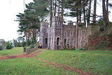 On a hillside above the village are gardens created by Maria 'Laetitia' Kempe Homeyard in the late 1920s and early 1930s and built by Thomas Rider, consisting of an informal terraced arboretum with a level walk along the top providing views of the Teign estuary and the Jurassic Coast. A feature of the gardens is a folly known as Shaldon Castle. First opened to the public in 1955 and currently under the stewardship of Teignbridge District Council, the gardens are open all year round.