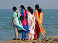 Punjabi women in west Punjab[47][48] and east Punjab[47] (which includes Haryana and Himachal Pradesh) traditionally wore the Punjabi suthan suit which was made of a head scarf, upper garment and suthan.[49]