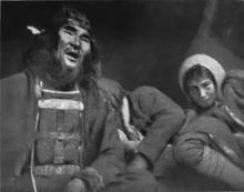 Traditional culture of Ket people was researched by Matthias Castrén, Vasiliy Ivanovich Anuchin, Kai Donner, Hans Findeisen, Yevgeniya Alekseyevna Alekseyenko.[54] Shamanism was a living practice in the 1930s yet, but by the 1960s almost no authentic shaman could be found. Ket shamanism shared features with those of Turkic and Mongolic peoples.[55] Besides that, there were several types of shamans,[56][57] differing in function (sacral rites, curing), power and associated animal (deer, bear).[57] Also among Kets (like at several other Siberian peoples, e.g. Karagas[40][42][43]), there are examples of using skeleton symbolics,[55] Hoppál interprets it as a symbol of shamanic rebirth,[44] although it may symbolize also the bones of the loon (the helper animal of the shaman, joining air and underwater world, just like the shaman who travelled both to the sky and the underworld as well).[45] The skeleton-like overlay represented shamanic rebirth also among some other Siberian cultures.[46]