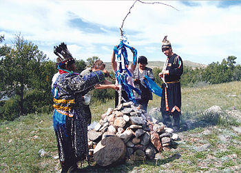 - Karagas shamanism is affected by Abakan-Turkic and Buryat influence.[33] Among the various Soyot cultures, the central Soyot groups, keeping cattle and horses, show Khalkha Mongol phenomena in their shamanism,[34] the shamanism of Western Soyots, living on the steppe, is similar to that of Altai Turkic peoples.[35] A shaman story narrates contacts between Soyots and Abakan Turkic peoples in a mythical form.[36]
