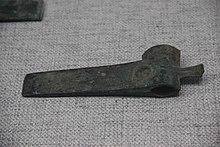 The Erligang culture centred on the Zhengzhou site is found across a wide area of China, even as far northeast as the area of modern Beijing, where at least one burial in this region during this period contained both Erligang-style bronze utensils and local-style gold jewelry.[21] The discovery of a Chenggu-style ge dagger-axe at Xiaohenan demonstrates that even at this early stage of Chinese history, there were some ties between the distant areas of north China.[21] The Panlongcheng site in the middle Yangtze valley was an important regional center of the Erligang culture.[29]
