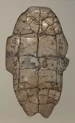 The Shang believed that their ancestors held power over them and performed divination rituals to secure their approval for planned actions.[61] Divination involved cracking a turtle carapace or ox scapula to answer a question, and to then record the response to that question on the bone itself.[58] It is unknown what criteria the diviners used to determine the response, but it is believed to be the sound or pattern of the cracks on the bone.