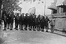 The first detachment of 31 Europeans, effectively borrowed from the Hong Kong Police and led by Samuel Clifton, was recruited almost immediately after the formation of the Shanghai Municipal Council (SMC). These men were on patrol by September 1854.[1] Further men were recruited from the Royal Irish Constabulary, London's Metropolitan Police and from the military presence in Shanghai itself, while a structure for recruitment of Britons in the United Kingdom eventually came about through the Shanghai Municipal Council's London agents, John Pook & Co. Once formalised, a steady stream of young men was recruited to serve in Shanghai. Promotion from the lower ranks of the force was, however, limited. Most of the force's commanders were recruited from British domestic or colonial police forces, although a cadre of young British men was recruited as cadets, and held senior ranks in the force in the 1910s-'30s.[2]