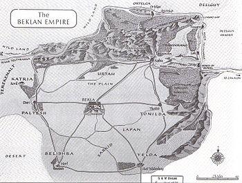 Shardik takes place in the Beklan Empire, which consists of twelve vassal provinces and independent domains organized around the central Beklan province, at the centre of which is the empire's capital, Bekla. The capital is typically controlled by factions from one of the provinces, and the outermost provinces continuously threaten to break free. The lingua franca of the empire is the Beklan language. The subdivisions are Bekla (the capital), Belishba, Chalcon, Gelt, Lapan, Kabin of the Waters, Ortelga, Paltesh, Tonilda, Ur-tah, Yelda, and Sarkid of the Sheaves.